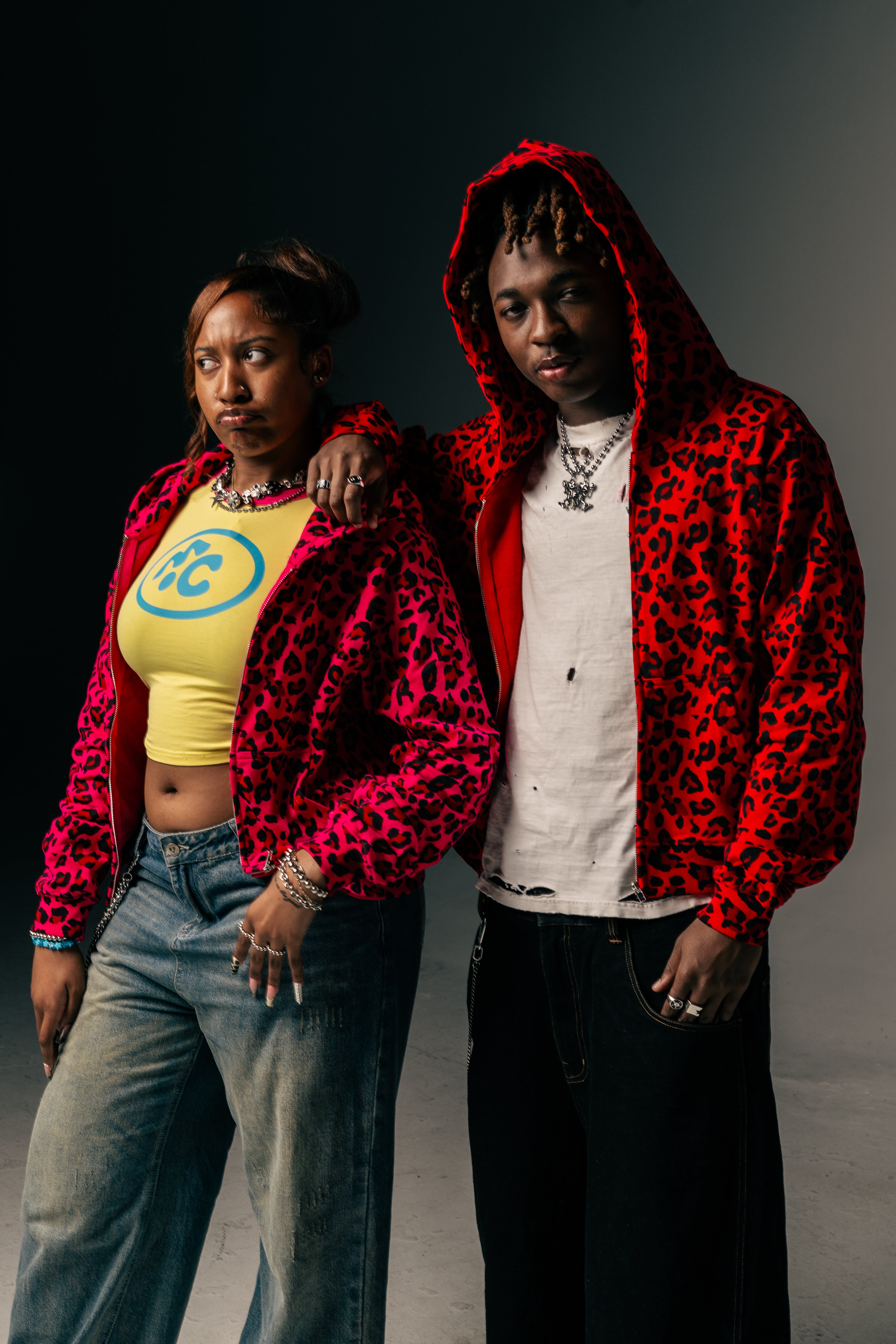 Material: 400 GSM French terry cotton with ribbed cotton/elastane trim Fit: Cropped & relaxed — true to size (see size chart in last slide) Design: Zip-up, deep hood, ribbed cuffs/hem, all-over cheetah print Care: Dry clean only Shipping: Ships in 1–2 days